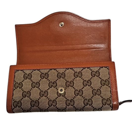 GUCCI LONG WALLET BROWN/ORANGE CANVAS.