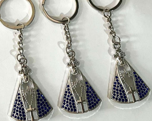 SILVER KEYCHAIN O.LADY APPARITIONS WITH RHINESTONES – Set of 12