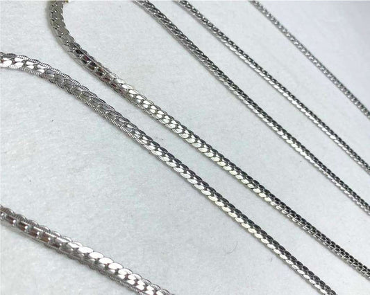 SILVER STAINLESS STEEL GRUMET FLAT CHAIN WITH DETAILS 1.4 / 60 CM – Set of 12