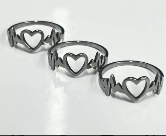 SILVER STAINLESS STEEL HEART AND BEAT RING – Set of 36