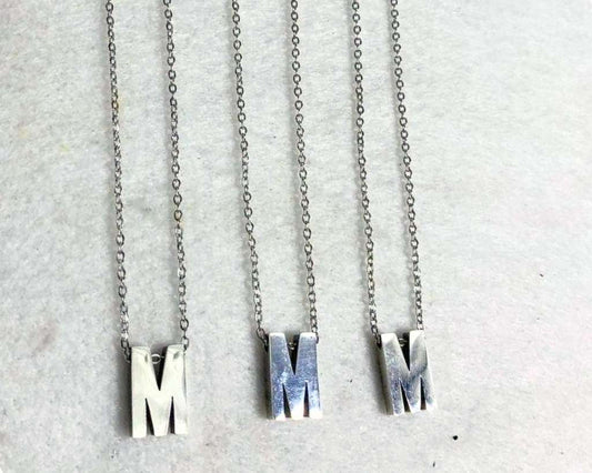 SILVER STAINLESS STEEL NECKLACE LETTER M – Set of 12