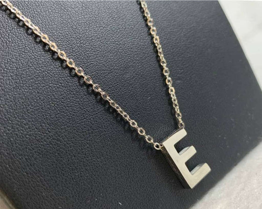 SILVER STAINLESS STEEL NECKLACE LETTER E – Set of 12