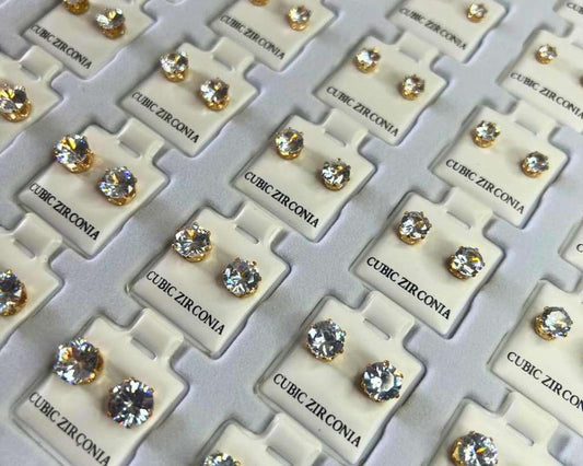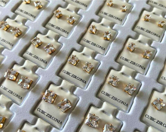 GOLDEN EARRINGS SQUARE STONE ZIRCONIA DIFFERENT SIZES- Set of 36