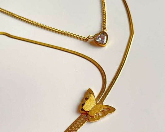 SET GOLDEN EARRING AND NECKLACE BUTTERFLY HEART STONE - Set of 12
