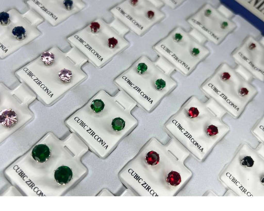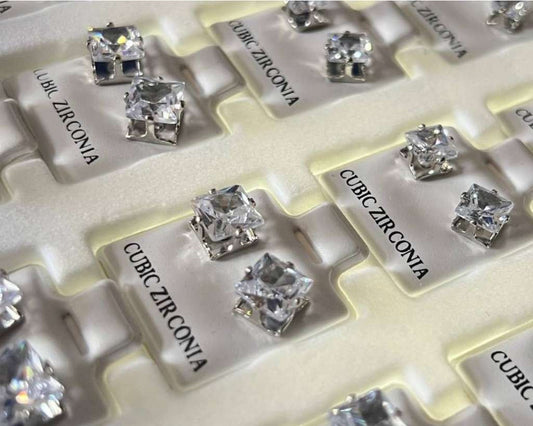 SILVER EARRINGS SQUARE STONE ZIRCONIA- Set of 36
