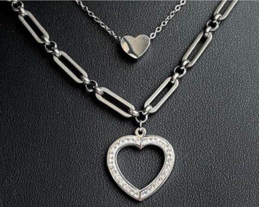 SET SILVER EARRINGS HEART AND NECKLACE HEART STUDDED- Set of 12