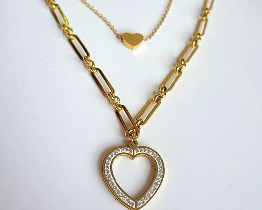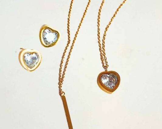 SET GOLDEN EARRINGS HEART AND NECKLACE HEART STUDDED- Set of 12