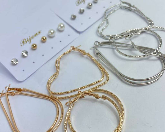 SET GOLDEN/SILVER EARRINGS VARIOUS SHAPE-Set of 12