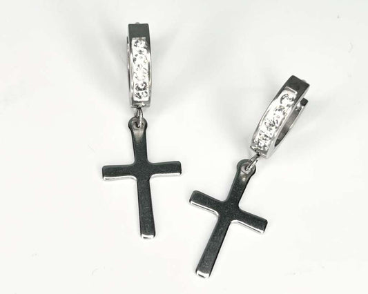 SILVER STAINLESS STEEL LITTLE EARRINGS CROSS – Set of 120