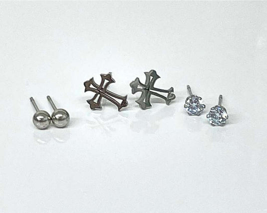 SILVER STAINLESS STEEL LITTLE EARRINGS STUDED STONES CROSS – Set of 120