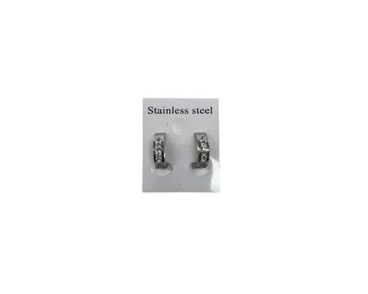 SILVER STAINLESS STEEL LITTLE EARRINGS WITH RHINESTONES – Set of 120