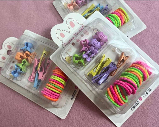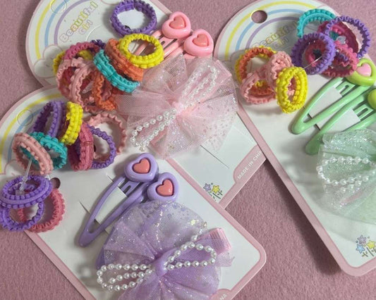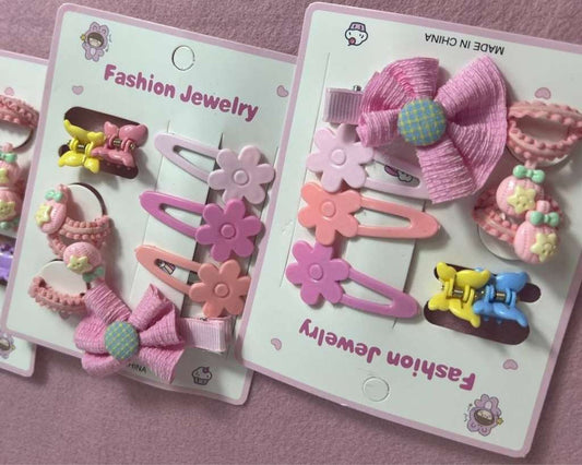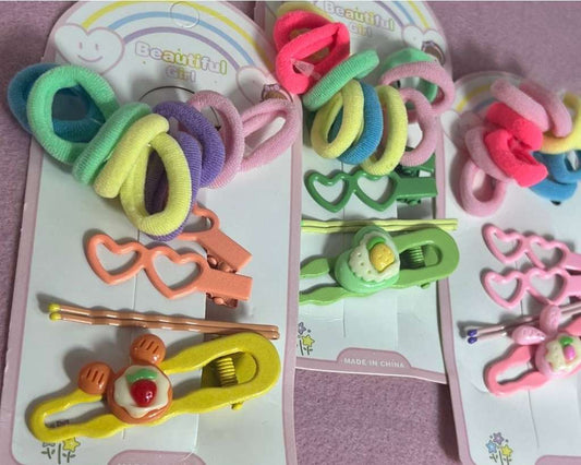 HAIR KIDS ACCESSORIES CLIP AND ELASTIC- Set of 12