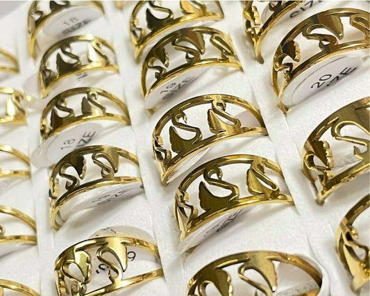 GOLDEN STAINLESS STEEL THREE SWANS RING- SET of 36