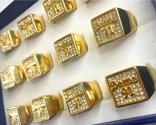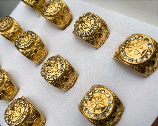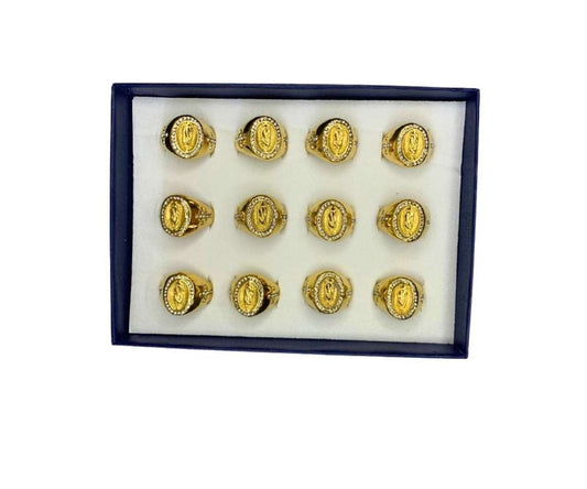 STAINLESS STEEL RING SAINT JORGE GOLDEN WITH RHINESTONES – Set of 12
