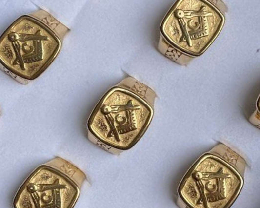 GOLD SQUARE MASONRY STAINLESS STEEL RING – Set of 12
