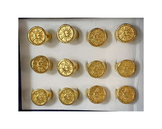 GOLDEN STAINLESS STEEL SUN AND MOON ROUND RING – Set of 12