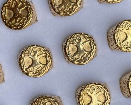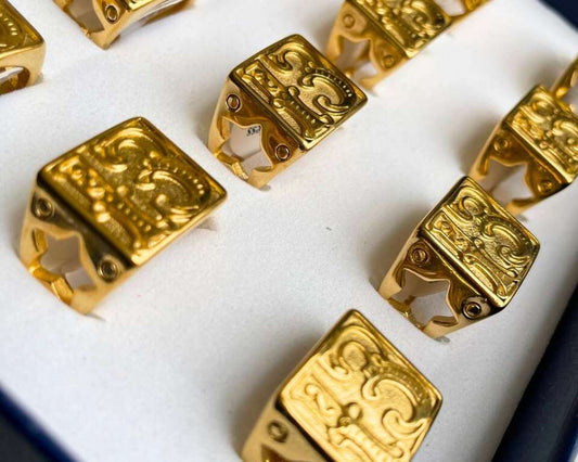 GOLDEN STAINLESS STEEL RING RAELIANISM – Set of 12