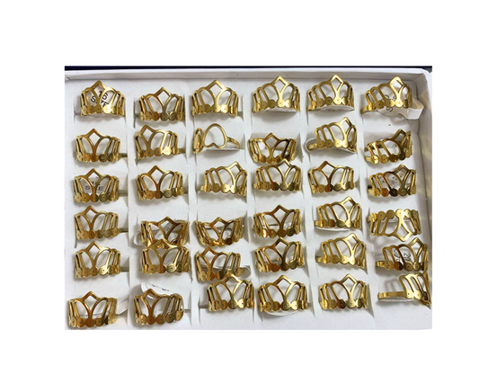 GOLDEN STAINLESS STEEL CROWN RING – Set of 36