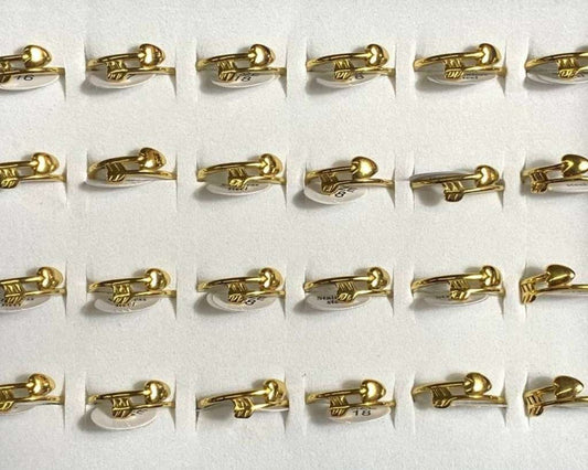 GOLDEN STAINLESS STEEL HEART ARROW RING – Set of 24