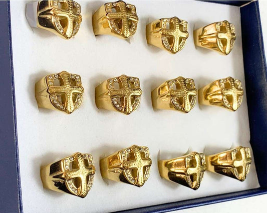 GOLDEN STAINLESS STEEL SHIELD RING WITH STRASS – Set of 12