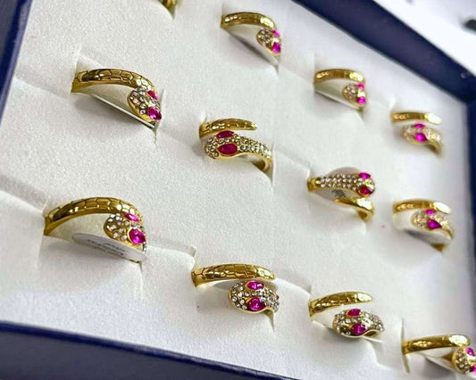 GOLDEN STAINLESS STEEL SNAKE EYES PINK RING – Set of 12