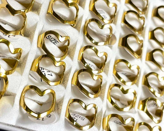 GOLDEN STAINLESS STEEL LARGE HEART RING – Set of 36