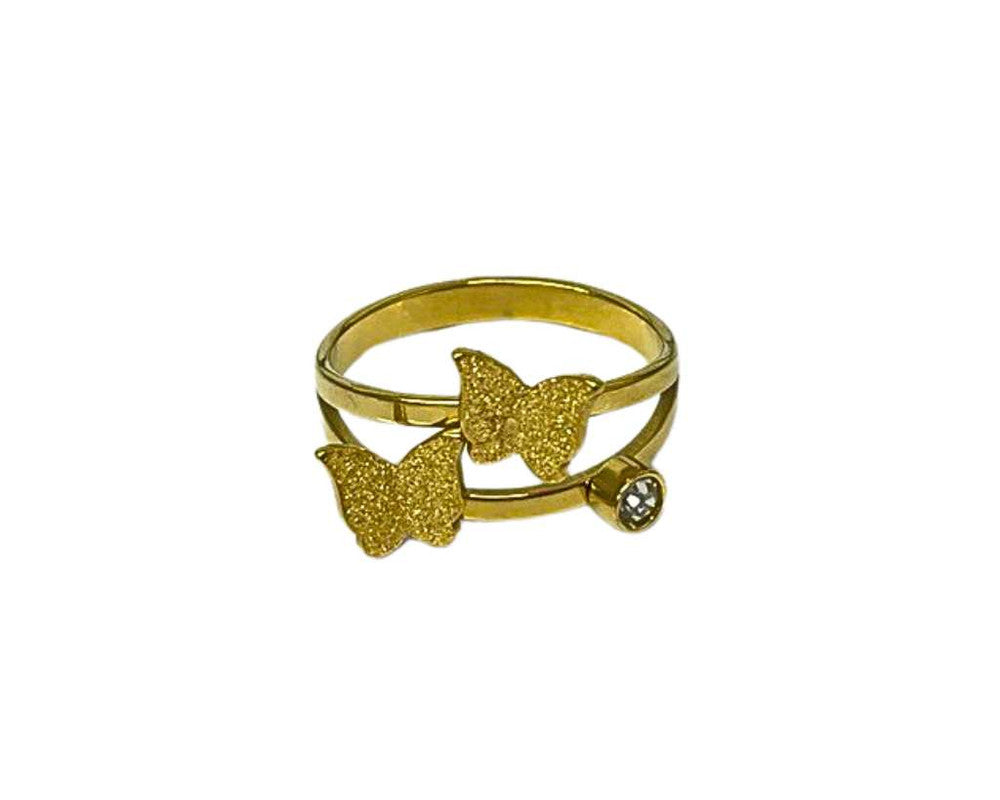 GOLDEN STAINLESS STEEL RING 2 BUTTERFLY DIAMOND WITH ZIRCONIA- Set of 36