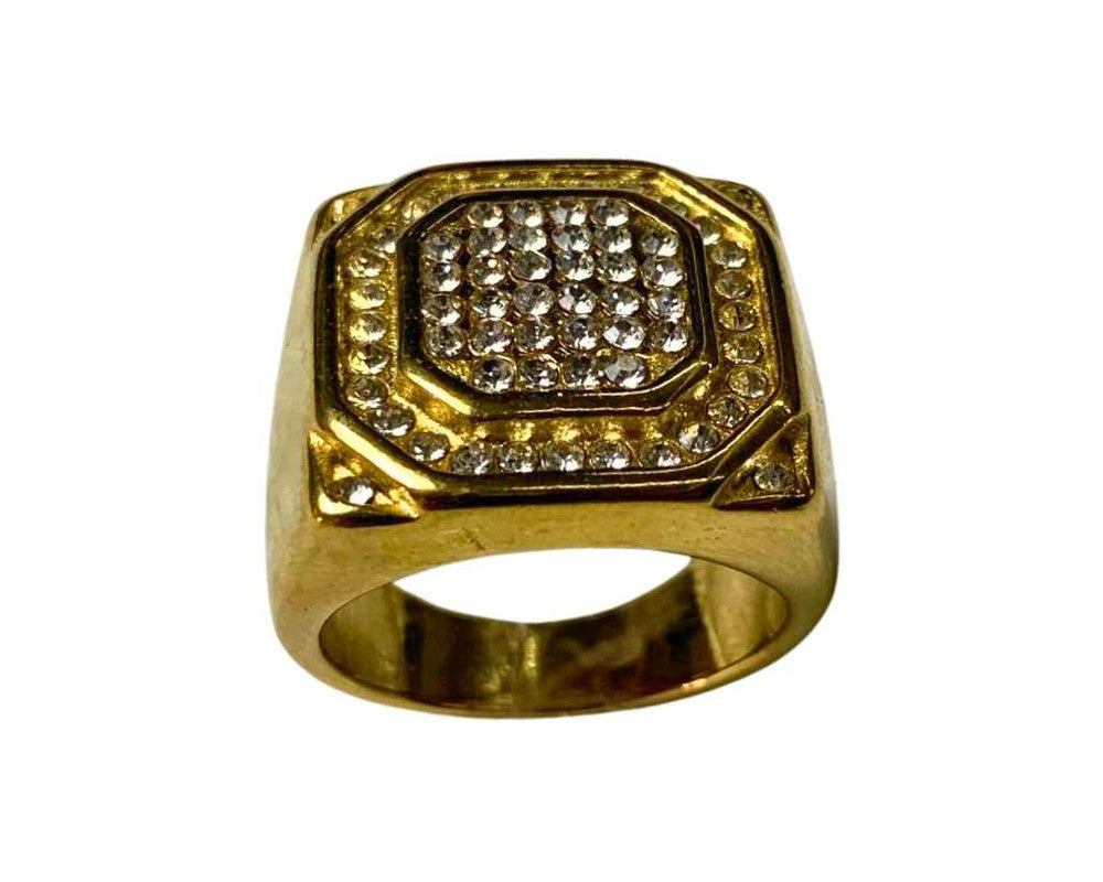 LARGE SQUARE GOLDEN STAINLESS STEEL RING WITH RHINESTONES – Set of 12
